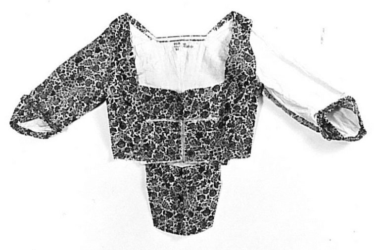 Incompleet sitsen vrouwenjak, met dicht bloemetjespatroon op witte grond