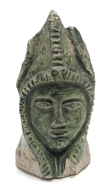 Spaarpotje in de vorm van een mannenkop met een kap en grote ezelsoren