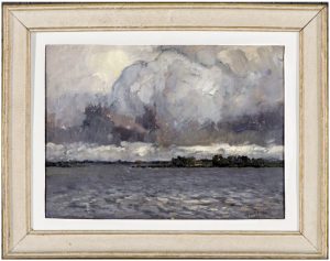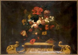 Bloemstuk in vaas op gebeeldhouwd voetstuk
