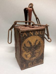 Vierkante ijzeren armenbus met scharnierend deksel en scharnierende overslag
