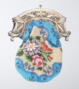 Ajour zilveren beugel met kralenbeurs met bloempatroon