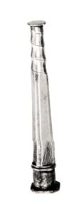 Naaldenkoker met bovenaan de koker, onder de schroefdraad, een driehoekige palmet van ruitpatroon