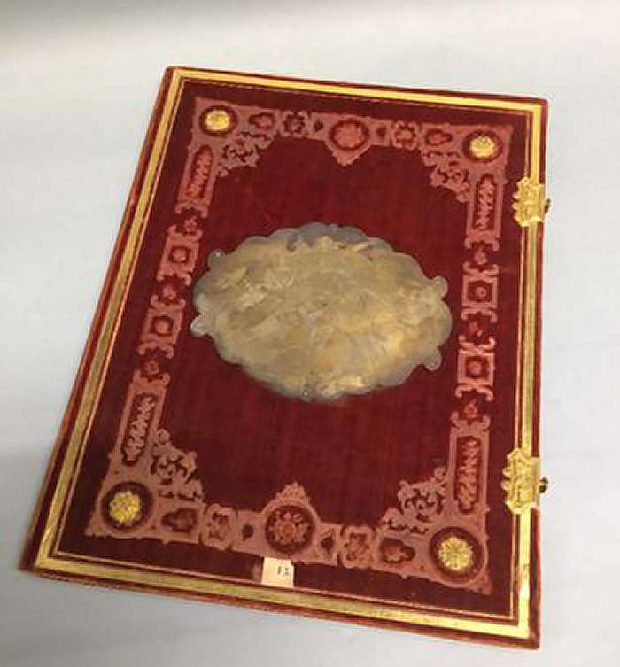 Album in fluweel gebonden met gouden plaat
