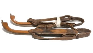 Paar schaatsen met compleet leerwerk en vrij brede ijzers