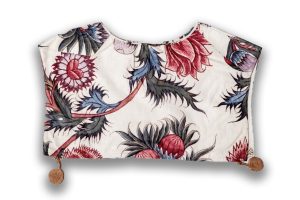 Kroplap of onderst van Indiase sits met groot bloempatroon op witte grond